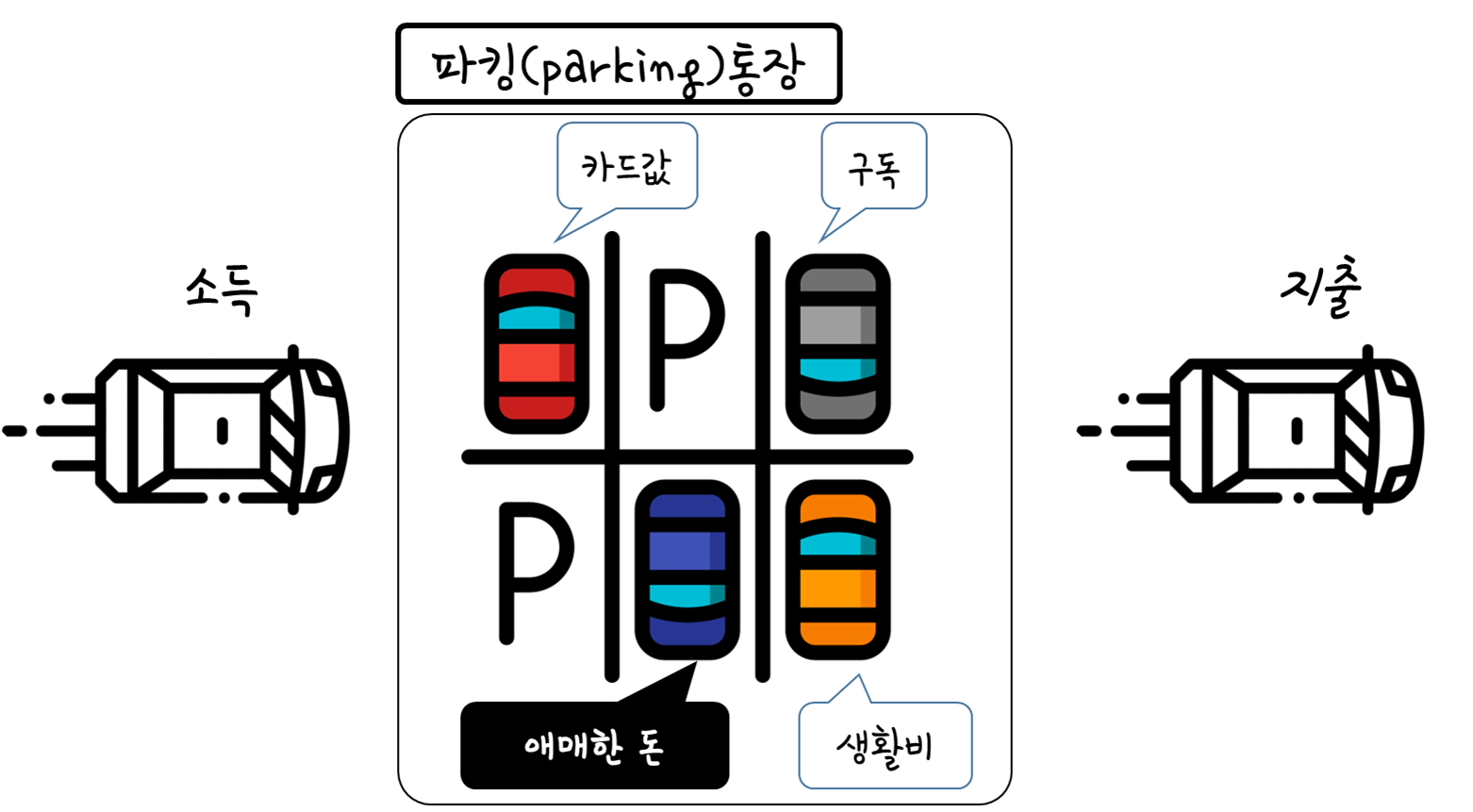 주차(파킹)하듯 돈을 잠시 보관하는 용도로 사용하는 통장.